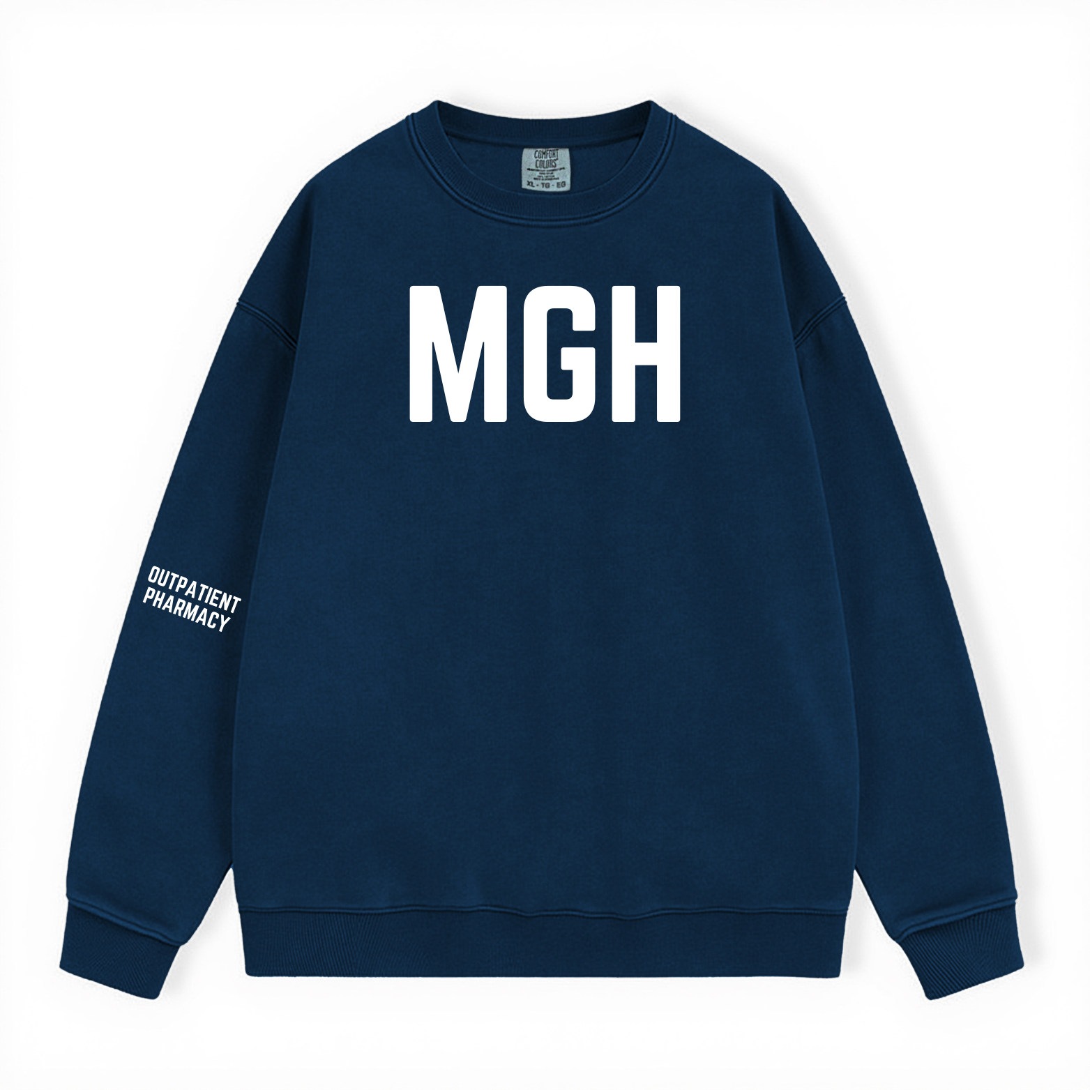 NAVY MGH OUTPATIENT PHARMACY COMFORT COLORS CREWNECK