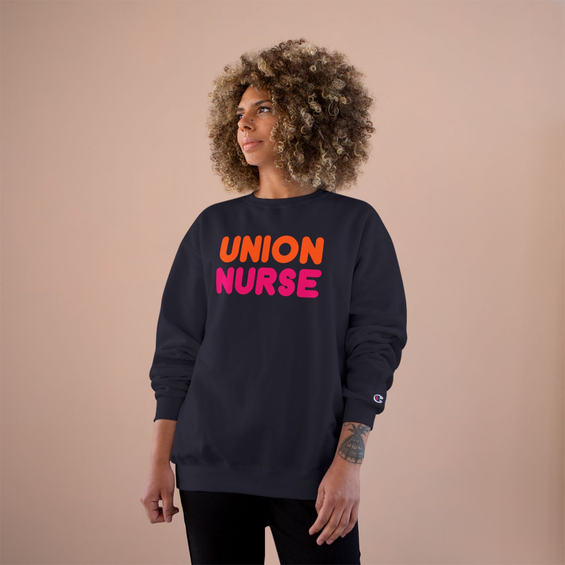 Stay warm and stylish with our comfortable Champion Sweatshirt, perfect for chilly days. Featuring a vibrant mix of colors and bold lettering, this sweatshirt celebrates the spirit of teamwork and unity, making it a great statement piece for nurses and healthcare professionals. Whether you're heading to work, enjoying a casual outing, or relaxing at home, this versatile sweatshirt fits seamlessly into your everyday wardrobe. Ideal for celebrating Nurses Day, healthcare awareness events, or as a thoughtful gift for the hardworking caregivers in your life. Show your pride and support with this unique design that inspires camaraderie among peers.